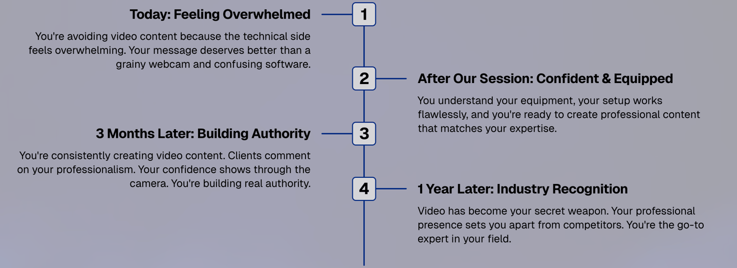 His streamlined approach gets you confident and camera-ready in a single afternoon, not months of YouTube tutorials and frustration.